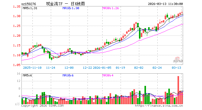 现金流ETF汇添富(159276)涨0.15%,半日成交额851.62万元