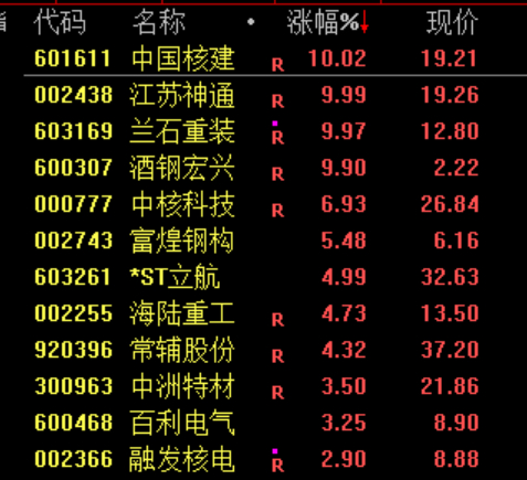 可控核聚变概念走高,兰石重装、中国核建、江苏神通涨停。