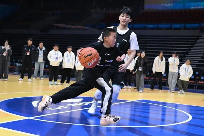 3月8日上午,孩子们迎来了此行最期待的时刻——观看CBA全明星南北区明星队热身训练。该校六年级学生曾子轩,这个绰号“小老鼠”的男孩,身高不到1米4,却是学校篮球队的核心。去年姚基金篮球赛黄梅站,他独得28分,率队逆转,荣获MVP。他的偶像,正是同样以灵动著称的广东队球员徐杰。
