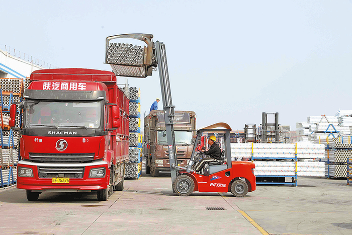 “年后订单非常饱满,我们正铆足干劲,奋力冲刺‘开门红’。”日丰企业(陕西)有限公司储运部部长曲成告诉记者,眼下物流运输已进入小高峰,每天发车量超过100车,“我们实行订单式生产,2026年计划生产量较2025年有较大增长,目前产能全开,就是为了全力保障交付。”
