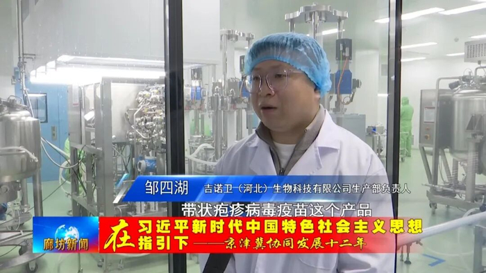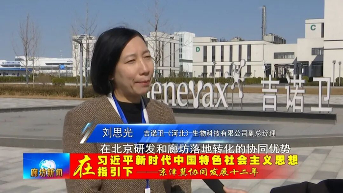 吉诺卫(河北)生物科技有限公司副总经理 刘思光:未来,我们要更好地发挥在北京研发和廊坊落地转化的协同优势,北京聚焦临床前的研发,然后将临床前的研发成果快速落地到廊坊的中试基地和商业化规模的生产,推进我们的创新疫苗产品,快速抢占国内的市场。