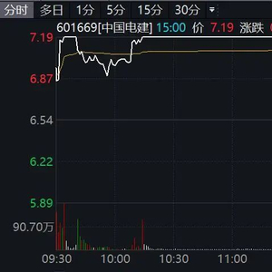 从二级市场来看,今日新能源概念股集体大涨。中国电建高开高走,盘中震荡拉升封涨停,收报7.19元/股。