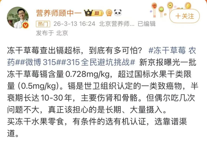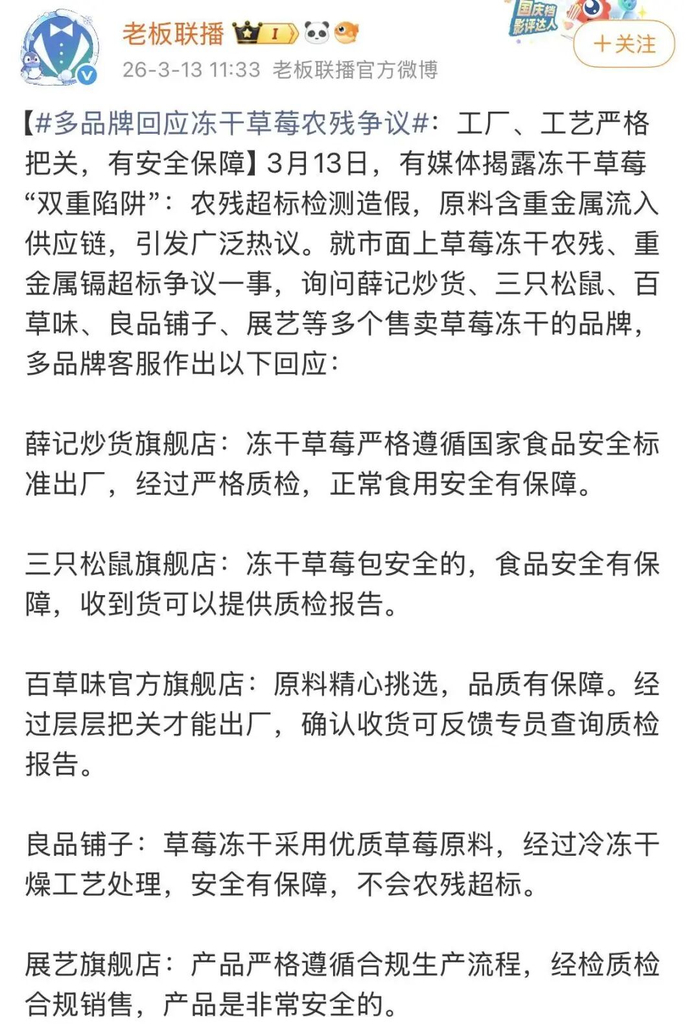 3月13日,#冻干草莓 农药#冲上热搜,引发关注。