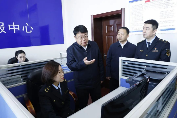 在市市场监管局,苑芳江来到12315投诉举报中心,看望慰问一线工作人员,实地查看场所建设情况,现场观摩热线接听流程,详细了解投诉受理、处置、反馈等工作开展情况。他强调,12315热线是联系群众、服务民生的重要窗口,要坚守为民初心,不断提升专业能力和服务水平,畅通维权渠道,提高响应效率,做到及时受理、精准派发、高效流转、依法处置。要持续强化食品药品、产品质量、市场价格等重点领域监管,切实维护消费者合法权益,营造安全放心消费环境。要统筹推动政务便民服务热线深度整合、高效联动,健全信息共享、协同处置、闭环管理工作机制,实现统一受理、分类处置、限时办结,不断提升投诉办理效率和群众满意度。苑芳江还来到“互联网+AI”智慧监管平台运行中心,详细了解数智赋能市场监管情况,强调要不断加大投入,加快建立全覆盖的智慧监管系统,充分发挥AI识别、远程监控等技术优势,把智慧监管和日常实地巡检结合起来,变被动响应为主动发现,变事后处置为事前预防,不断提升综合监管效能。