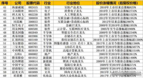 买股票就是买公司,选择好行业中的好公司并长期持有与公司共成长才能给投资者带来丰厚的回报;综合考虑行业特性、公司商业模式、公司成长性、公司盈利能力、公司具备的护城河以及股价长期表现等各方面因素,我筛选出了个人最看好的60只来自各行业、各细分领域优质龙头,个人认为这些个股大部分算得上是A股真正的核心资产,具备很好的中长期投资价值;