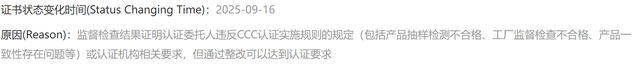 相关3C认证撤销原因