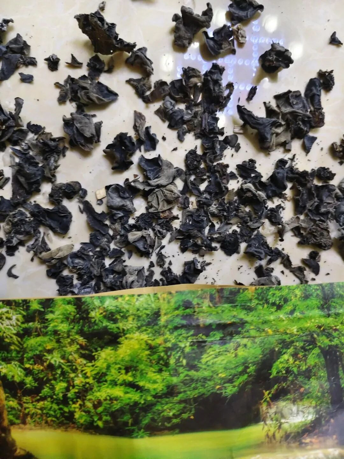 图片说明:收到的木耳颜色暗淡、碎片较多,甚至夹杂着木屑。