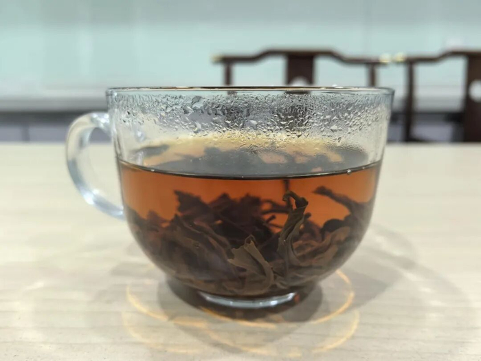 冲泡品质落差巨大——宣传中叶底舒展完整、汤色橙黄透亮;而实物冲泡后,叶底粗老、枝杈混杂,汤色浑浊且伴有浮毛、杂质,没有任何“香甜甘醇”的香气,口感平淡寡淡。