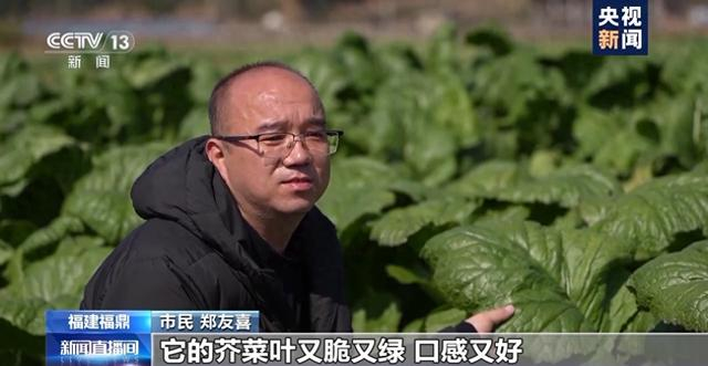 市民 郑友喜:我们一般都是早上这个时间点来采摘,因为早上这个时间点它通过雨露滋润以后,它的芥菜叶又脆又绿,口感又好。