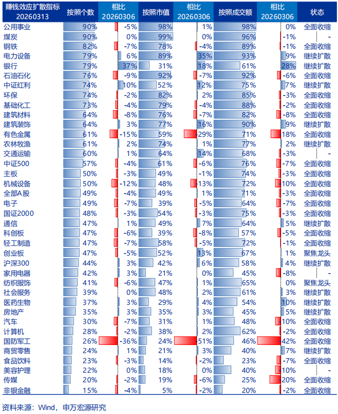 美伊冲突抑制全球风险偏好,权益市场普遍调整,但A股相对有韧性。国别相对力量变迁对资产定价的影响已潜移默化(全球对此定价普遍不足,而美伊冲突下的A股韧性可能是定价的起点)。中国不再是输入性通胀的被动接受者,也不再是地缘冲突的旁观者。中国有能力在地缘博弈下长袖善舞,也有能力腾挪缓冲事件性冲击的影响。A股基于中长期“竞争格局”变化的定价正在进行时。A股正在适应地缘冲突多发,中国需主动作为的环境。这是A股市场特征的重大优化,也是牛市基本盘的证明。
