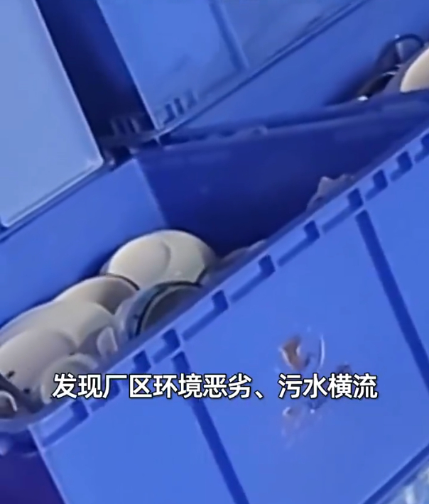 2025年12月8日至10日,记者前往位于广州白云区太和镇的映山红公司展开暗访调查。来到厂区门口,记者看到随意摆放的垃圾桶糊满黑色污垢,紧邻车间的地面污水横流,臭味刺鼻。“下水道那里没办法冲下去,堵住是经常的事。”工人向记者坦言,脏乱差是该厂区的常态。进入映山红公司生产车间,记者看到内部杂乱无章:餐具回收区内苍蝇四处乱飞,未洗和洗好的碗筷碟子混在一起、堆积如山;清洗设备严重老化,表面覆盖着厚厚的污垢,浸泡池里的水浑浊不堪,酸馊味扑面而来。