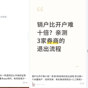 这种‘宽进严出’的所带来的落差,引来众多投资者选择在各大社区平台上宣泄。界面新闻记者在浏览抖音、小红书等社交平台后发现,因销户体验不佳而随之发帖的吐槽并不鲜见,一篇销户难的帖子下跟帖的同家券商相似销户经历者更不在少数。