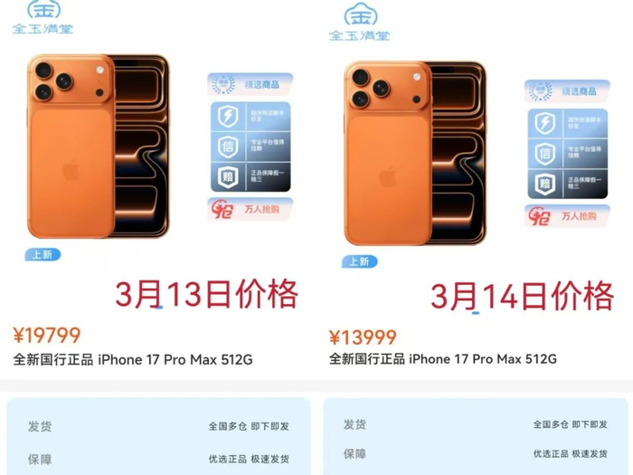 3月14日,金玉满堂修改商城内商品价格,并下架“先享后付”功能。