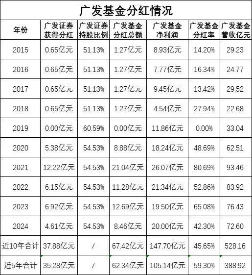 近年来,公司在实施员工持股后,对股东保持了相对稳定的分红水平。即便部分基金经理管理规模有所下降,股权分红仍为其带来可观收入,早前有媒体统计过广发基金历年的分红情况。