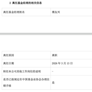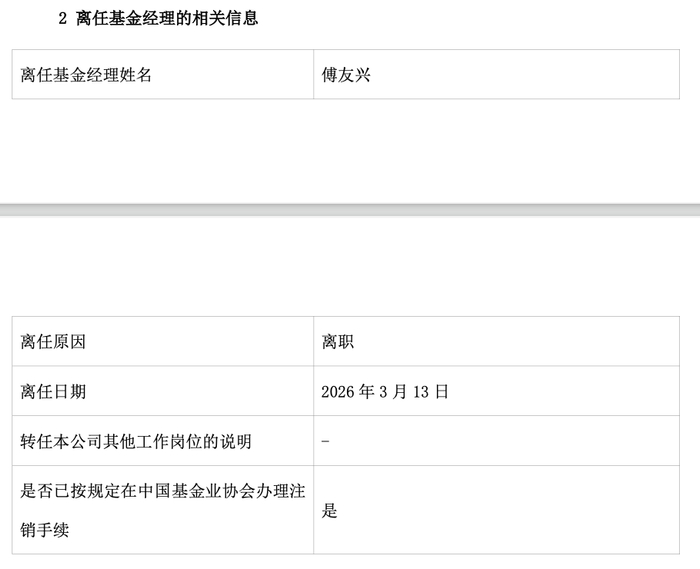 3月12日,广发基金发布公告,百亿级基金经理傅友兴正式卸任两只核心产品并离职。