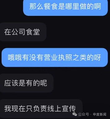 例如,记者询问一个名为“简餐”的账号餐食制作地点时,对方表示“在公司食堂”,至于到底是什么公司,对方言辞闪烁。