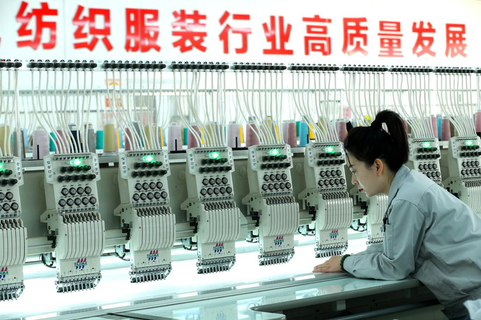 山东省青岛市即墨区即发集团有限公司的工人在绣花生产线上忙碌(2026年2月22日摄)。新华社发(梁孝鹏摄)“十五五”大幕开启,进入基本实现社会主义现代化夯实基础、全面发力的关键时期。