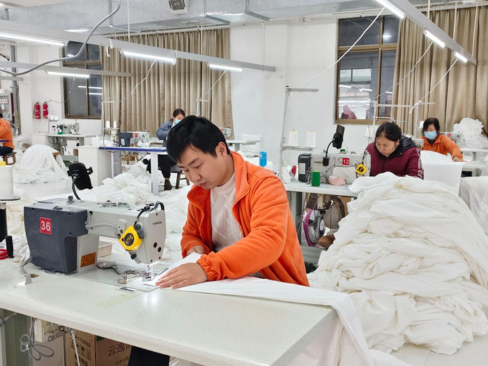 2026年3月11日,南通优棉濠晨纺织品有限公司的缝制车间里一片忙碌,工人正在缝纫机前穿针引线,精心缝制家纺套件。(受访者供图)发展和安全是一体之两翼、驱动之双轮。