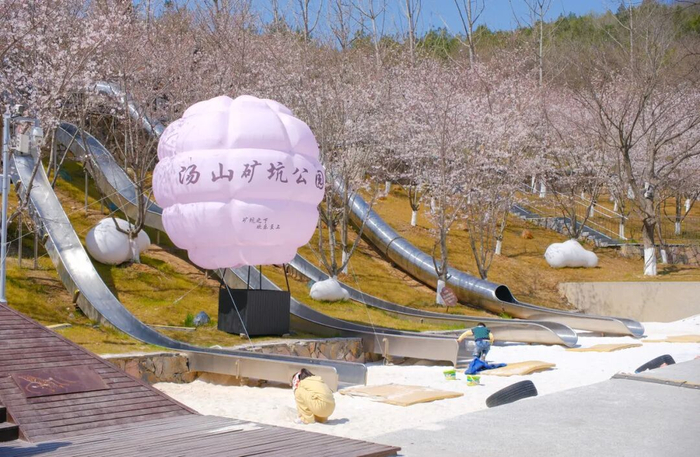 曾经的采石矿坑,开出了最绚烂的春色。樱花如瀑倾泻,硬朗与柔美碰撞出惊心动魄的美。一路漫步看花海与矿坑交织,这是属于汤山的春日涅槃。