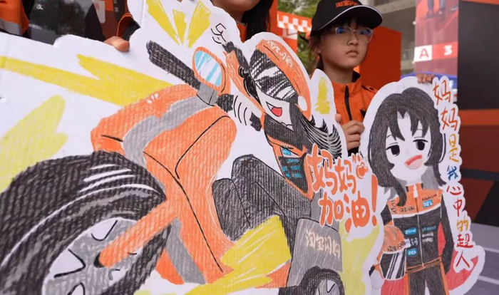 刚刚荣获全国三八红旗手的田丹,也把两个女儿从老家接到上海。孩子们特地为这次观赛准备了礼物——亲手绘制的画作上,“妈妈是我心目中的超人”的字样格外醒目。在为赛车手加油的同时,她们也在用自己的方式为妈妈打气。在孩子眼中,穿梭街巷送外卖的妈妈,和赛道上飞驰的车手一样值得骄傲。“虽然我们都在不同的赛道,但都有着对工作的一份热情和专业。”田丹说。