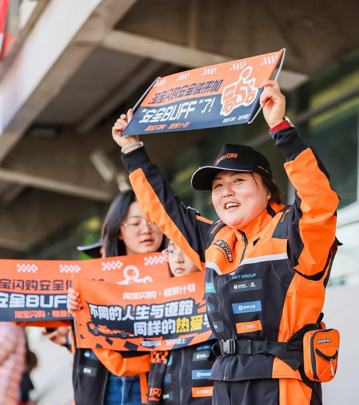 3月15日,正值2026F1中国大奖赛在上海国际赛车场展开决赛日激烈角逐。现场一抹流动的橙色格外亮眼——20余位身穿“淘宝闪购”骑士服的“城市骑士”挥舞着应援物品,为赛道上的车手加油助威。