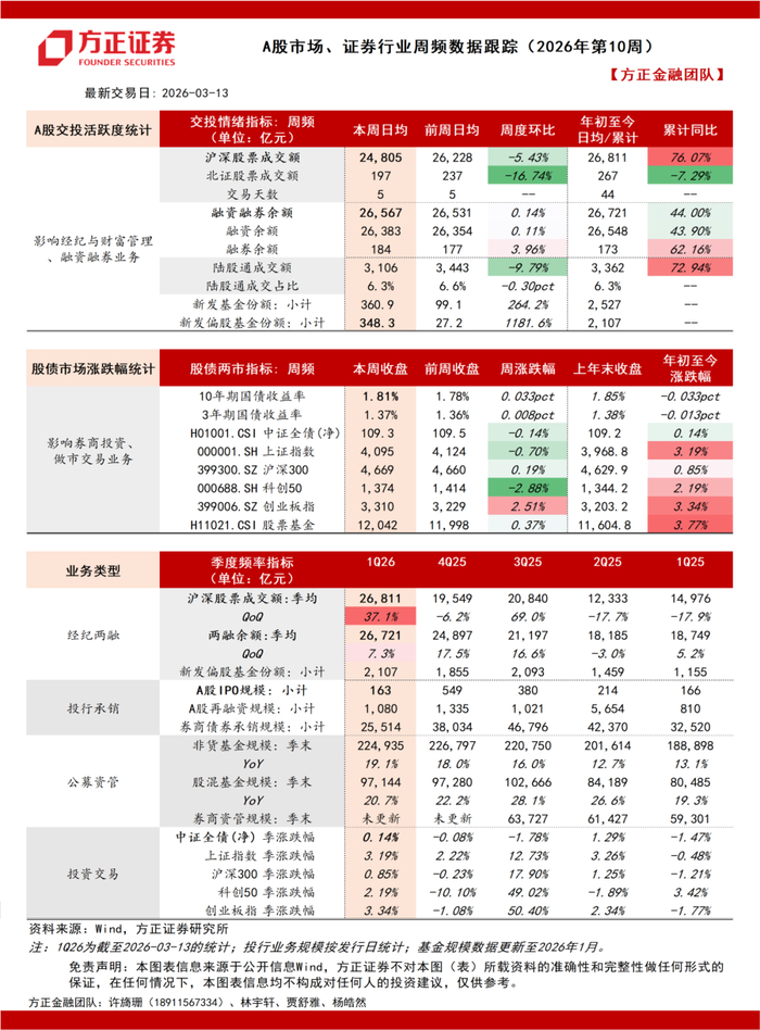 A股市场、证券行业周频数据跟踪(2026年第10周):