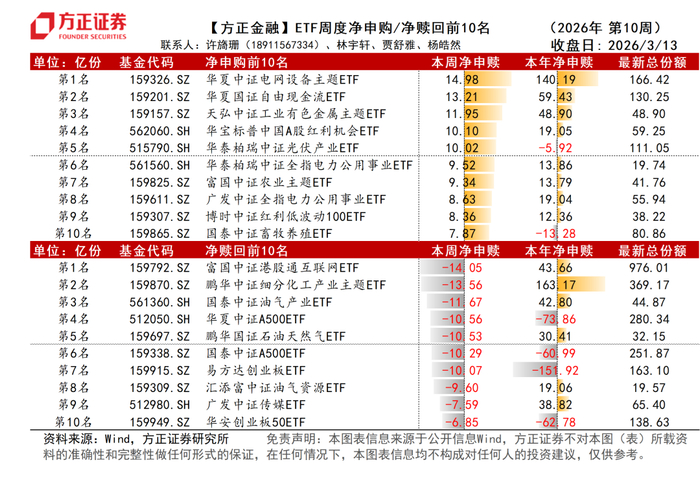 ETF净申赎周度数据跟踪(2026年第10周):
