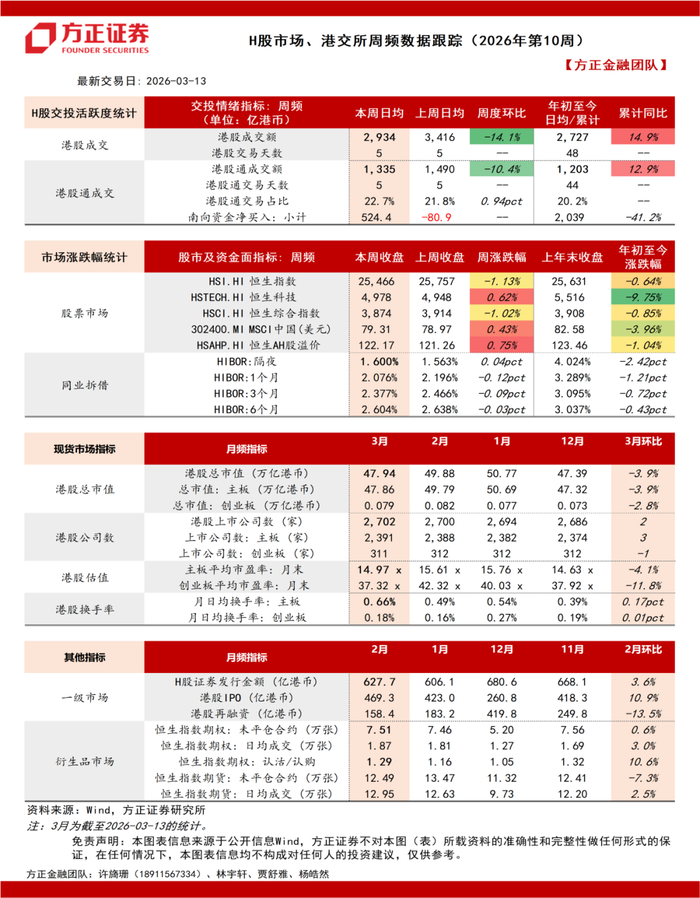 H股市场、港交所周频数据跟踪(2026年第10周):