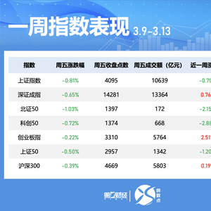 本周(3月9日至13日)A股指数走势分化,沪指本周累计跌0.7%,深证成指涨0.76%,创业板指涨2.51%,科创综指跌1.87%。板块方面,本周风电设备、电力、算力、电池概念股表现强势。