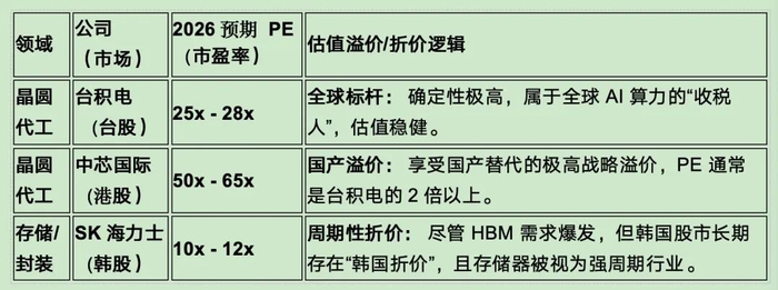 虽然它们都受AI浪潮驱动,但由于市场成熟度、资产稀缺性以及增长逻辑的不同,估值体系(PE/PB)存在显著差异。