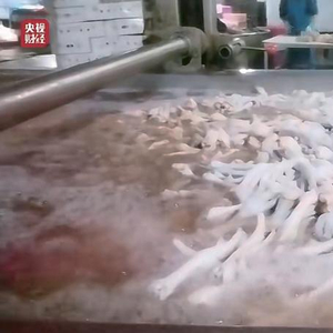 央视3·15晚会曝光的鸡爪加工现场。