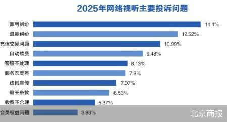 【网络视听】账号纠纷、退款纠纷、充值交易投诉占比近四成