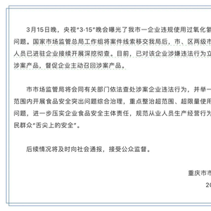3月15日晚,重庆市市场监管局发布情况通报。