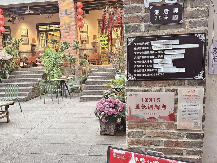 在烟台山街区,“放心消费行动承诺”和二维码是每家商户的“标配”。二维码整合了商户的证照、承诺书、检验结果、投诉电话等信息,还有消费者留言板块。如果留心观察还会发现,有的商店除了承诺书和二维码,还多了一块“12315里长调解点”的牌子。
