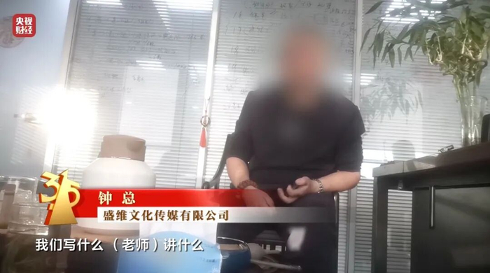傲盈文化传媒刘总直言:“顾客要的是老师权威身份,全是假的,全是骗人的。” 记者接触讲师受阻,对方称由于临近“3·15”晚会,录制工作要到晚会之后才会继续。
