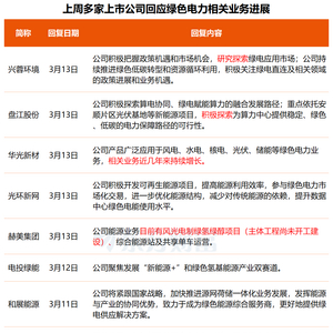 据不完全统计,上周有多家上市公司在互动平台对绿色电力相关提问进行了回复: