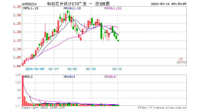 科创芯片设计ETF广发(589210)开盘跌0.52%,重仓股澜起科技涨0.34%,寒武纪跌0.73%