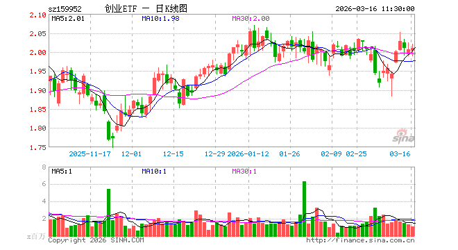3月16日,截止午间收盘,创业板ETF广发(159952)涨0.15%,报2.009元,成交额2.13亿元。创业板ETF广发(159952)重仓股方面,宁德时代截止午盘涨2.74%,中际旭创涨0.95%,新易盛涨1.01%,东方财富跌0.05%,阳光电源跌1.07%,胜宏科技跌0.95%,汇川技术跌2.05%,迈瑞医疗跌0.88%,温氏股份涨0.69%,天孚通信跌6.57%。
