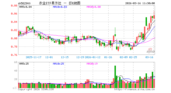 农业ETF易方达(562900)涨0.71%,半日成交额1809.59万元