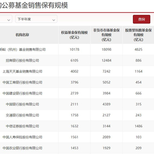 近日,中国基金业协会公布了最新的基金销售机构公募基金销售保有规模,自从调整为每半年公布一次之后,机构保有规模的变化更加明显,此次已有机构代销权益基金的保有规模超过万亿元。
