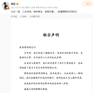 多年前,我们结束了婚姻关系。考虑到当时孩子年幼,未做对外公布。今日我们二人共同发此声明。