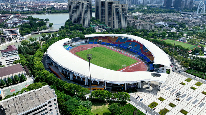 去年,“苏超”比赛现场的观众席可谓是一座难求。今年,宜兴市体育中心在体育场内场搭建临时看台,预计可额外增加5822个座位,并且今年的看台更科学合理、实用美观、盲区更少。