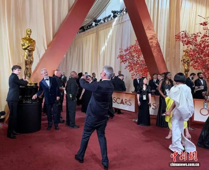 当地时间3月15日,第98届奥斯卡奖颁奖典礼在美国好莱坞杜比剧院举行。图为嘉宾走红毯并与奥斯卡金像合影。中新社记者 张朔 摄