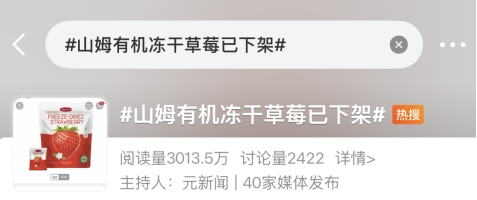 山姆一款有机冻干草莓生产商被曝农残、重金属超标 产品已下架