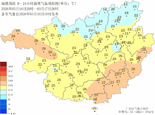 广西气象台16日17时发布预报: