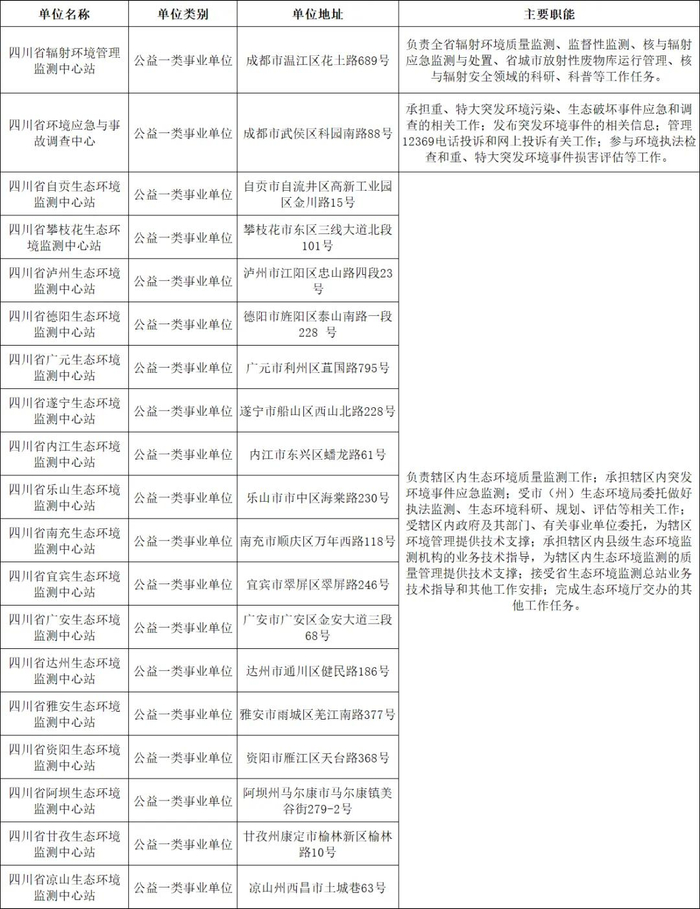补充到“四川省辐射环境管理监测中心站”等2个直属事业单位