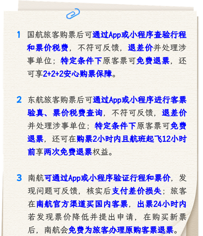 【最新】国航、东航、南航发布公告:机票买贵了可免费退