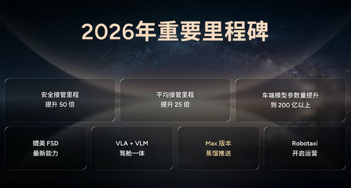 第二代VLA与上一代不同,其目标就是L4级别的智能驾驶,并采用了原生多模态物理世界大模型,模型运行速度可提升12倍,安全接管里程提升50倍,平均接管里程提升25倍,并实现媲美FSD的最新能力。