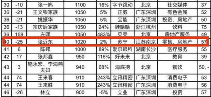 1990年12月26日,张近东以10万元自有资金,在南京宁海路租下一个200平方米的门面房,专营空调。1999年全面切入综合电器领域,2004年7月21日,苏宁电器上市。他连续多年名列江苏首富,还曾以1020亿元财富位列《2020胡润百富榜》第40位。