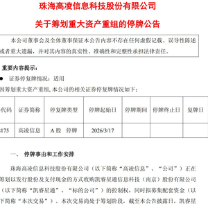 据高凌信息公告,公司正在筹划收购凯睿星通的控制权,并计划于3月17日开市起停牌,预计停牌时间不超过10个交易日。